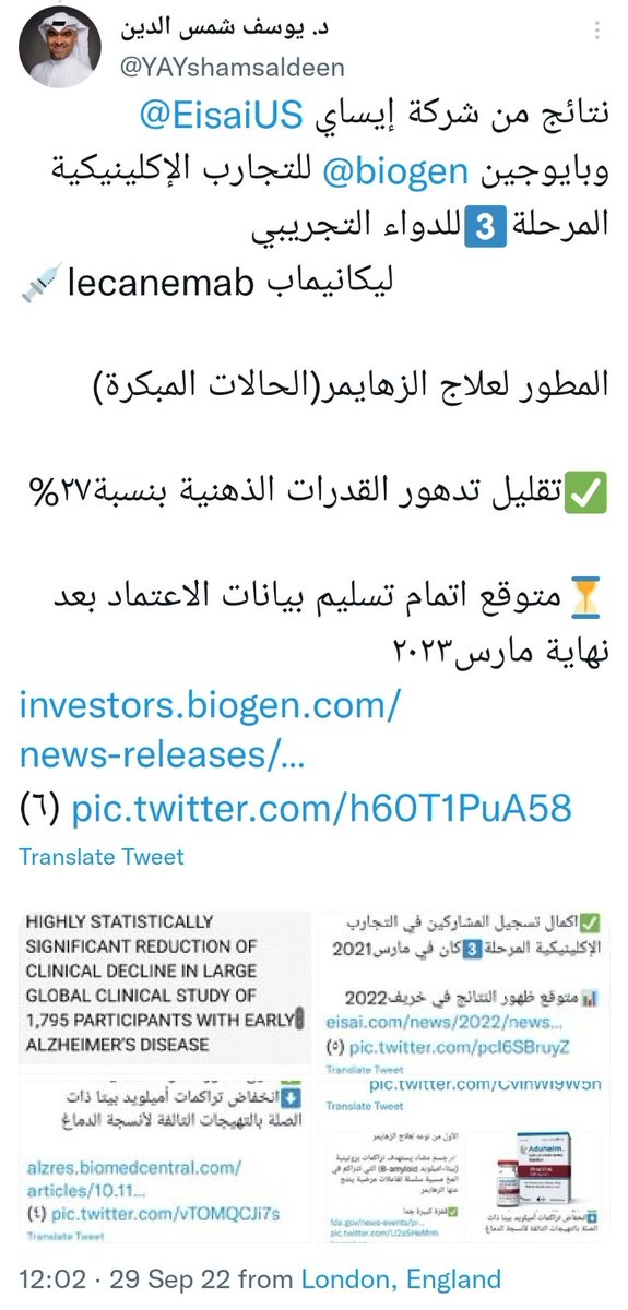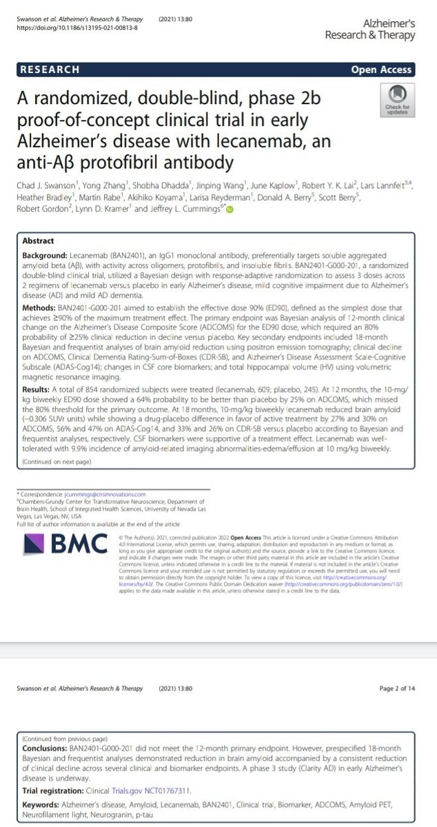 نتائج من شركة إيساي @EisaiUS وبايوجين @biogen للتجارب الإكلينيكية المرحلة3️⃣للدواء التجريبي