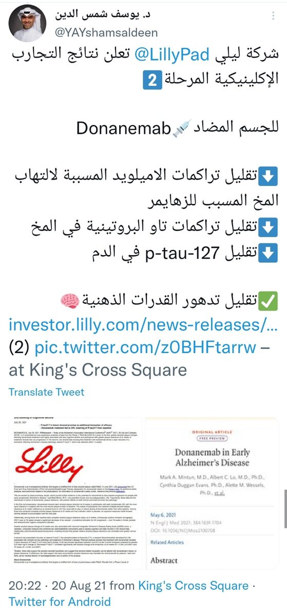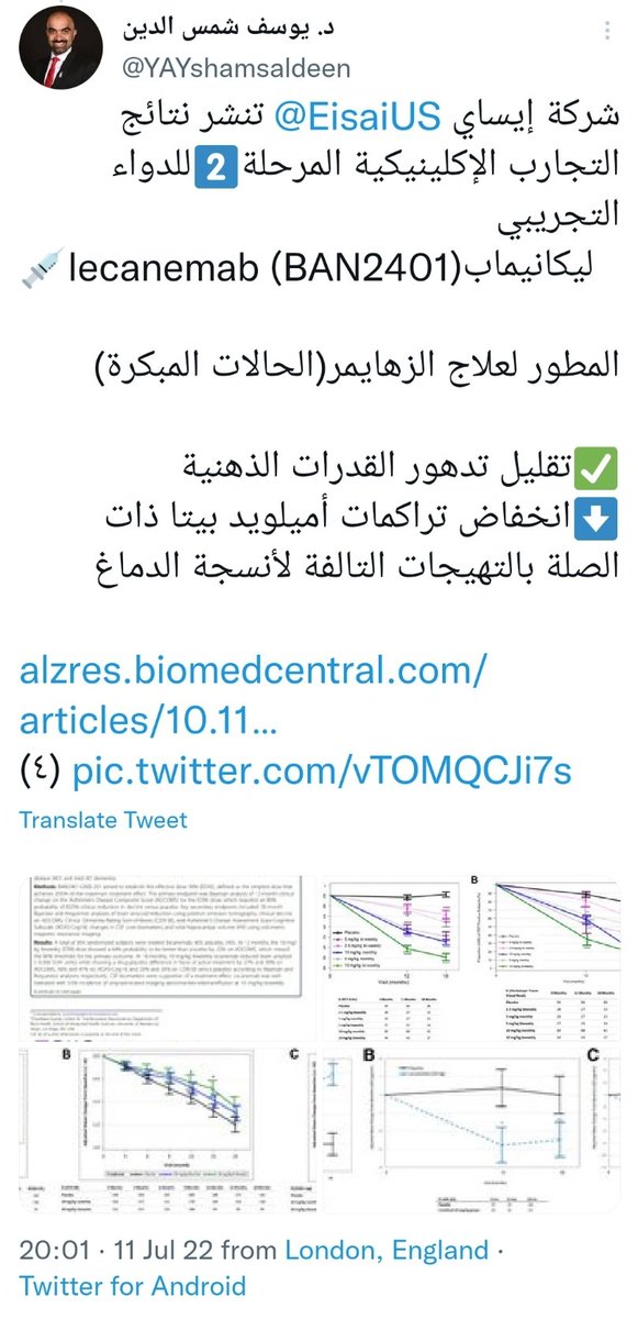 شركة إيساي @EisaiUS تنشر نتائج التجارب الإكلينيكية المرحلة2️⃣للدواء التجريبي