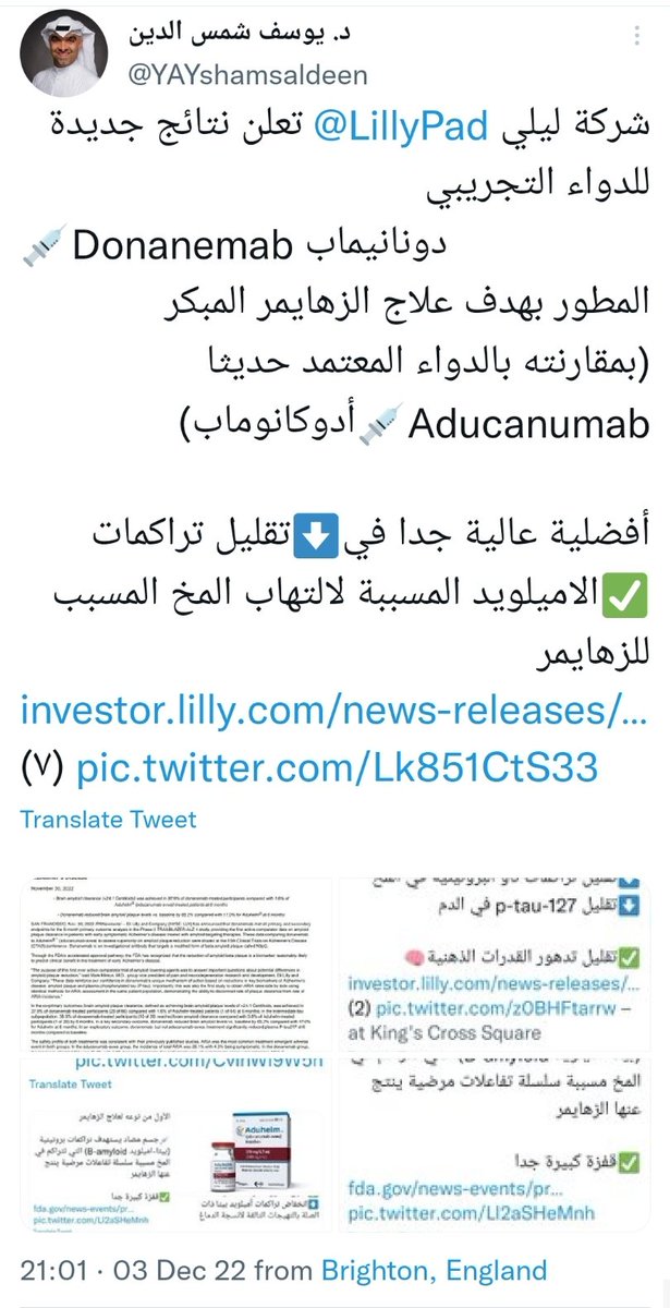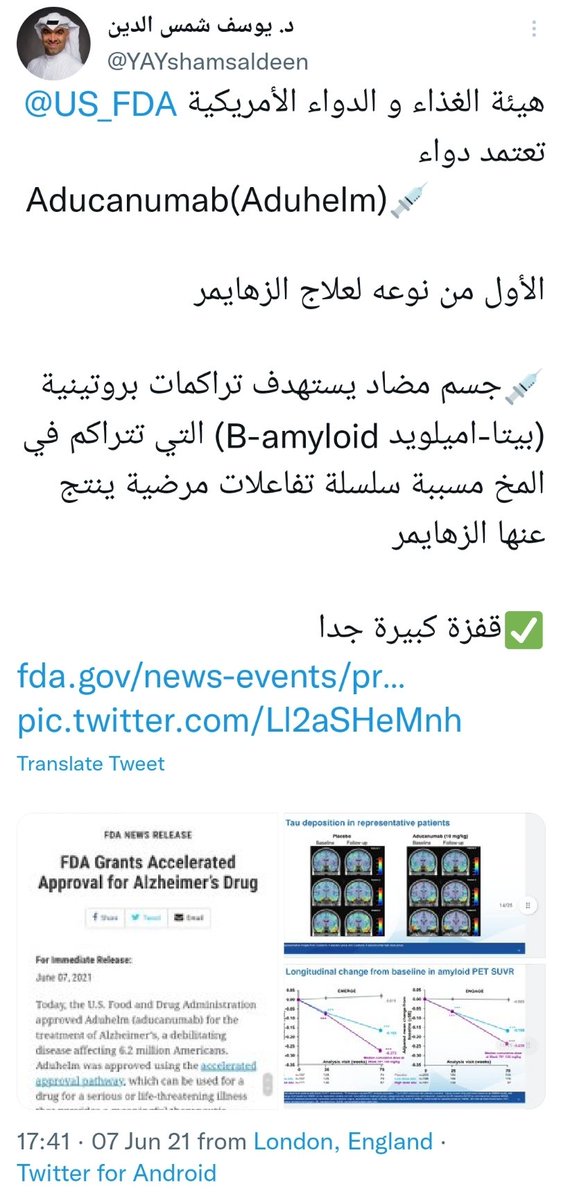 (بمقارنته بالدواء المعتمد حديثا Aducanumab💉أدوكانوماب)