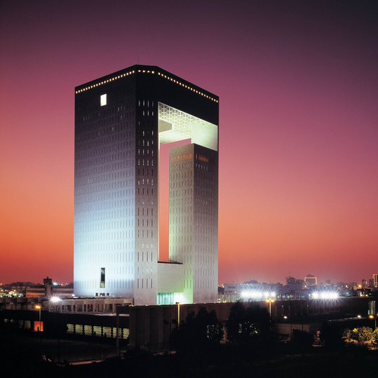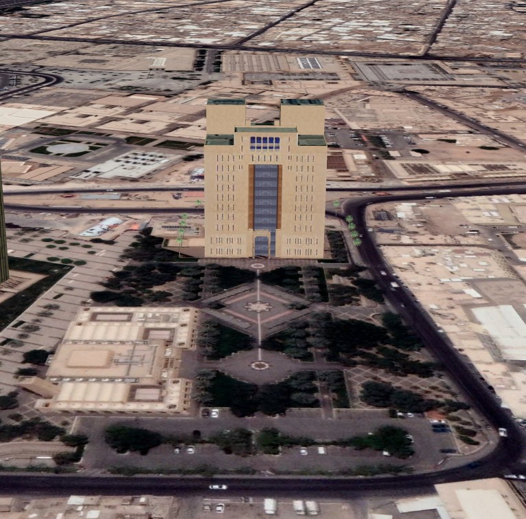 المبنى عبارة عن برج مرتفع عما حوله من مباني ضمن نسيجه العمراني ومحاط بفراغات عامة ولعلها من أهم ما ميز هذا المشروع عن غيره.