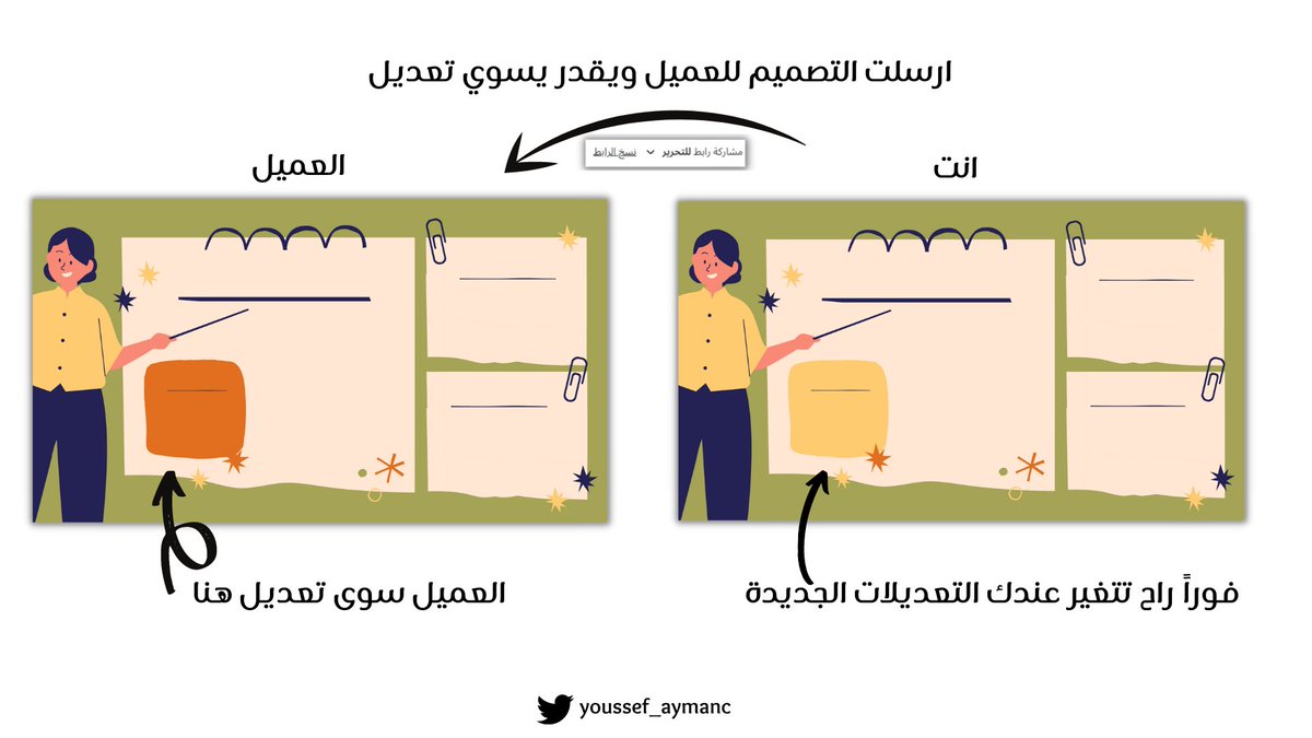 هنا ترسله العمل بصيغة مفتوحة عن طريق رابط في كانفا نفسه