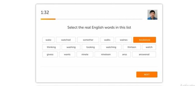 النوع الثاني : مجموعة كلمات إنجليزية و كلمات ليس لها معنى و تختار بينهم الكلمات الإنجليزية الحقيقية ( الصحيحة)( قبل انتهاء الوقت )