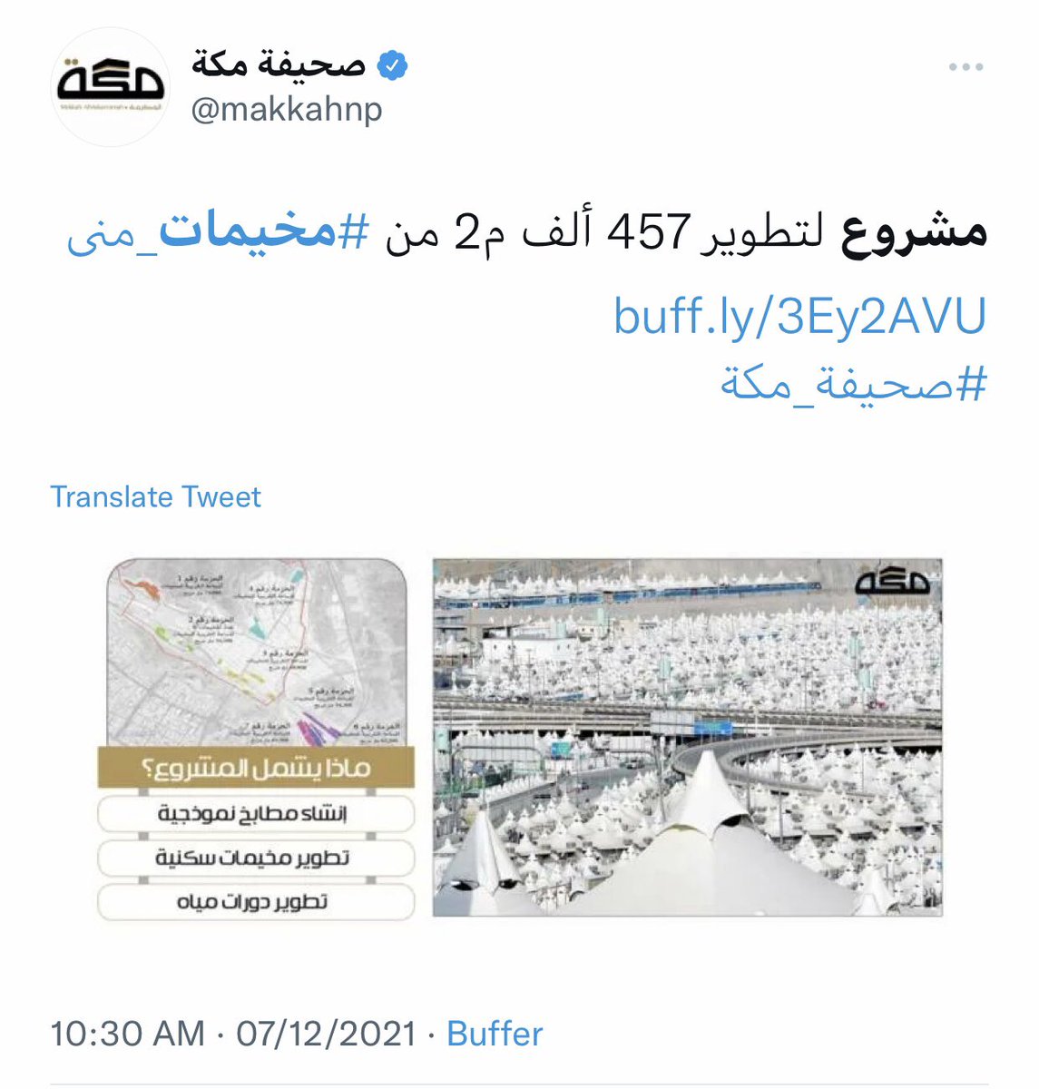 تطوير وتشغيل وصيانة مرافق و مخيمات #المشاعر_المقدسة
