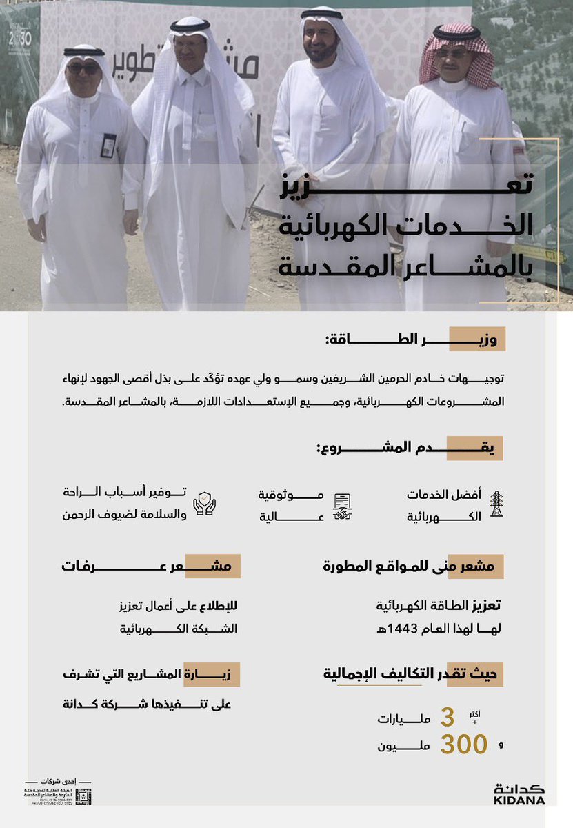 زيادة الموثوقية الكهربائية من خلال ٣٢ مشروعاً تنموياً بتكلفة تتجاوز ٣ مليار ريال، ومشاركة ٢٠٠٠ مهندس وفني في تشغيل وصيانة منظومة #الطاقة_الكهربائية في #موسم_حج_1443هـ