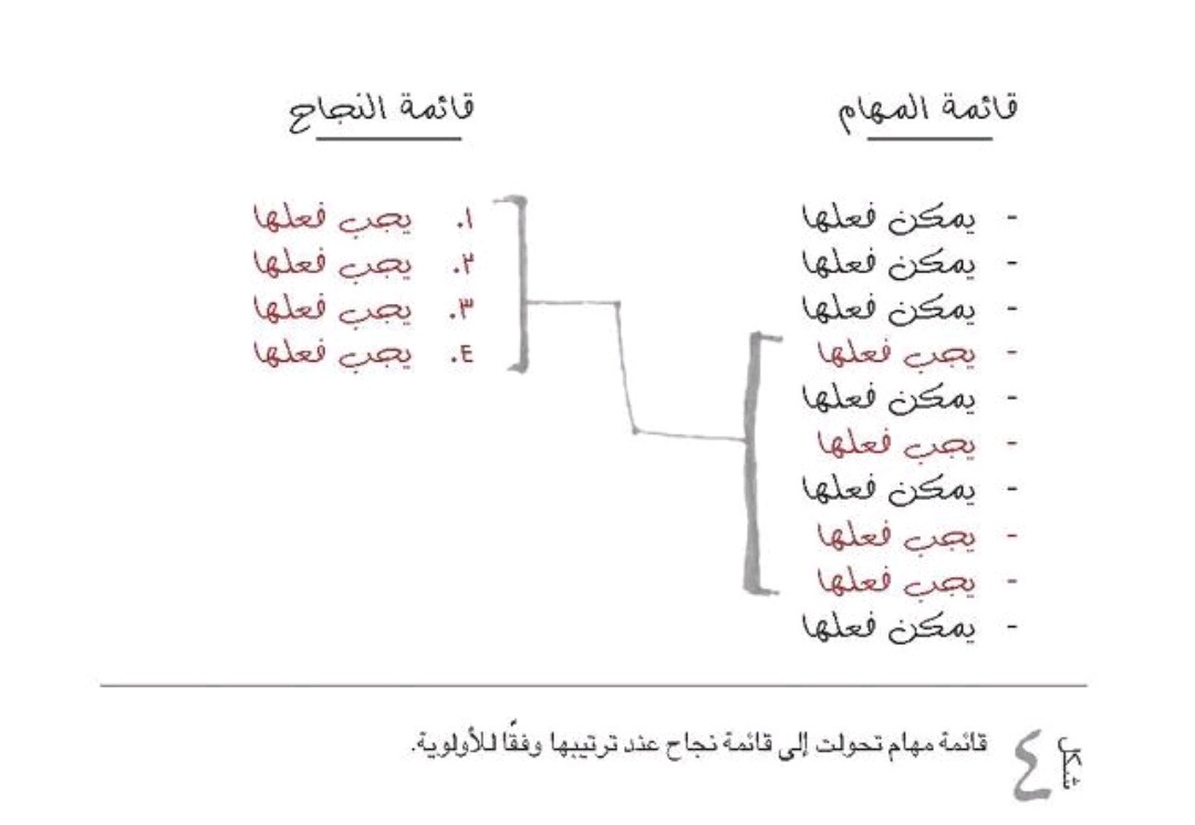 ١- اكتب مهام قليلة ومهمة فقط، واكتبها بطريقة الاهداف الذكية، ثم ضع خطة عمل واجراءات واضحة لتنفيذها.