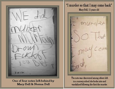 طبيعة ماري الميالة للىًخريب دفعتها إلى اقىًحام وتخرىٍب دار حضانة قريب , لم تكن المرة الأولى , وفعلت ذلك بصحبة صديقتها نورما جويس بيل ( 13 عاما ) , على الجدران كتبن عبارات من قبيل : " نحن قىًلنا مارتن بروان تبا لكم أيها الأوغاد"