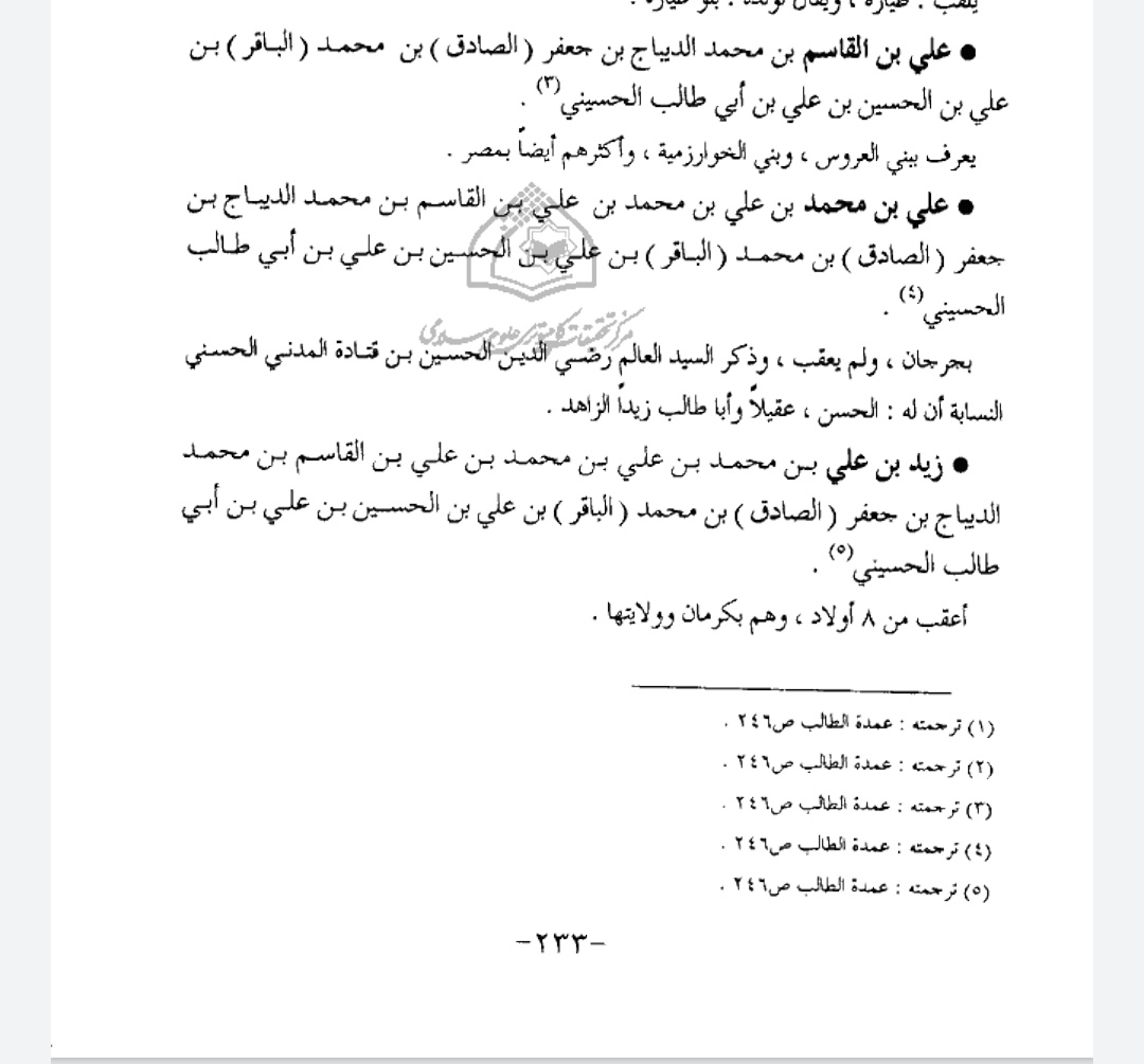 والمصدر الأول والأكبر الذي له الشكر الجزيل الأغزر السيد المهندس عادل العروسي الحسيني المشرف على مشروع بني العروس الجيني والباحث في تاريخ أسر بني الديباج.. لك وافر الامتنان على ما زودتني به من معلومات قيمة. ضنت بها المصادر والمعاجم.