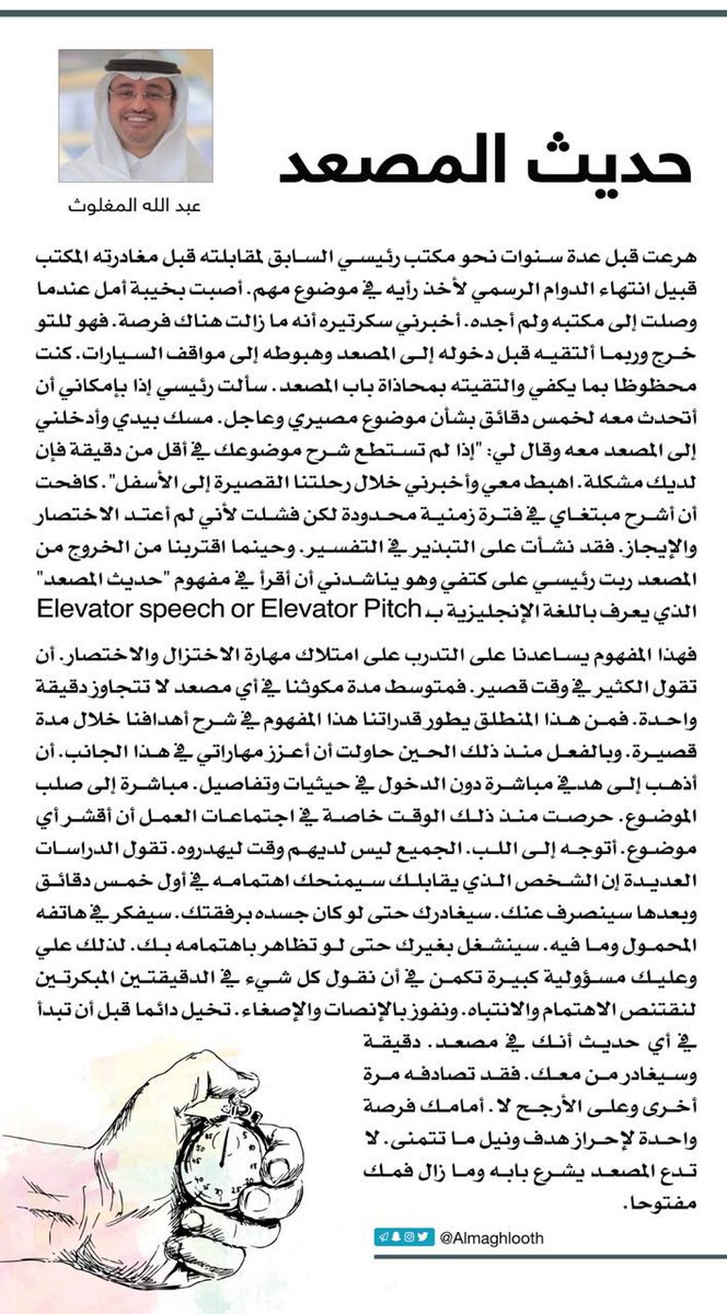 وفي ال📸 ايضا مقال مميز بعنوان: حديث المصعد للكاتب د.عبدالله المغلوث.