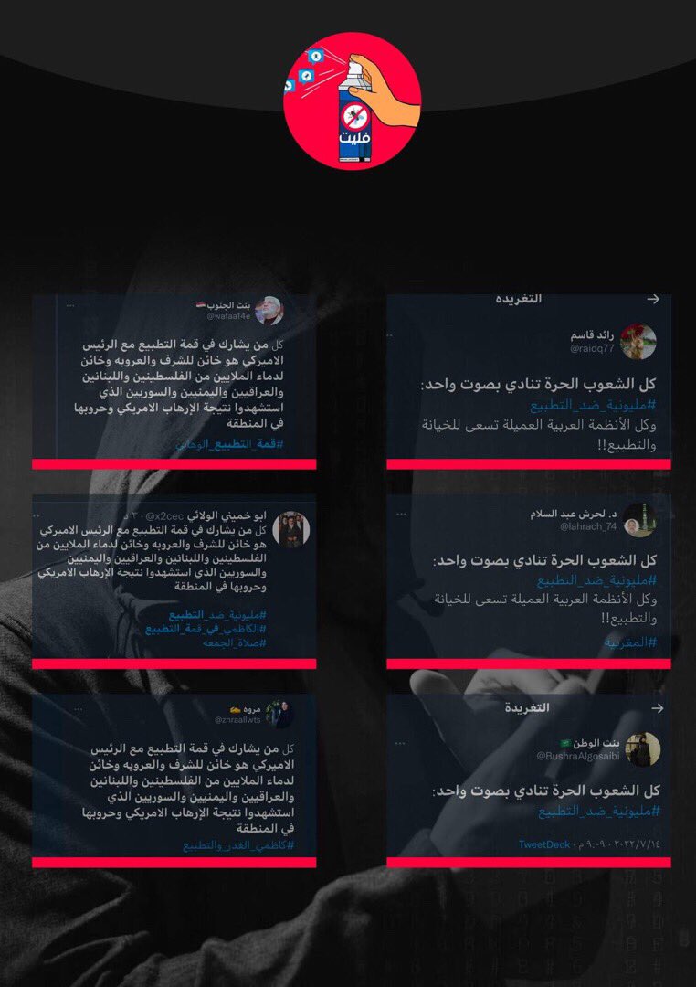وفي هذه الصورة نجد حسابات الذباب القذرة تجتمع في تاقات #مليونية_ضد_التطبيع + #مليونية_رفض_التطبيع