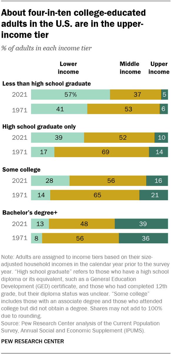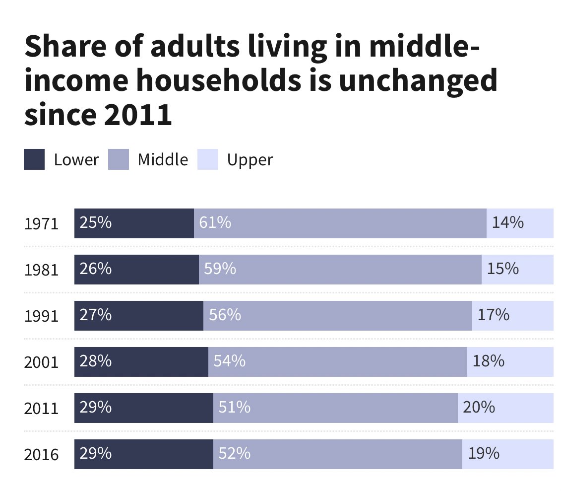 وهذا يعكس اتجاهاً طويل الأمد لطبقة متوسطة متقلصة على مدى العقود الخمسة الماضية.