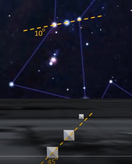 المهندس البلجيكي اتحرك بالبرنامج سنين للمستقبل، فوجد إن الفرق بيزيد، ولما بدأ يرجع لزمن أقدم من سنة 2500 ق.م، لاحظ إن الزوايا فرقها بيقل مع الوقت..