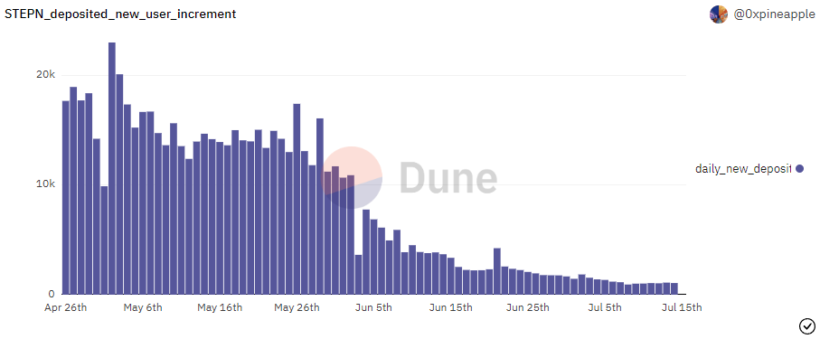 Każda moda się kiedyś kończy, a w #krypto trendy umierają znacznie szybciej. Ilość użytkowników #STEPN kurczy się dynamicznie. Biegacze albo stracili zainteresowanie albo odpływają do innych aplikacji (te najpewniej czeka podobny los). #movetoearn