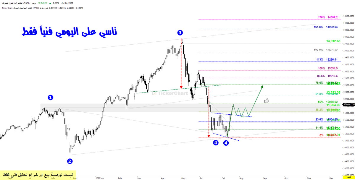 #تاسي على اليومي مازال الوضع كما هو تصحيح موجة 4 ولفي وصلنا منطقة ال88 فيبو نكمل شهر تقريبا في هذه