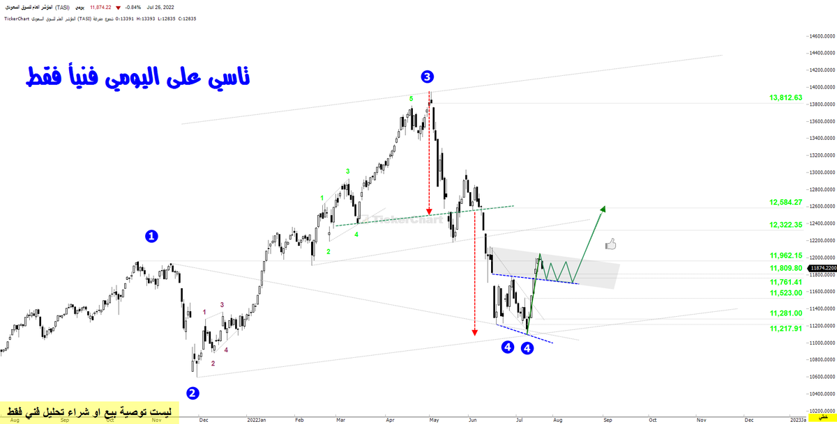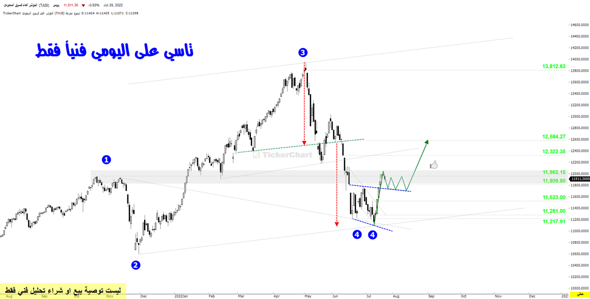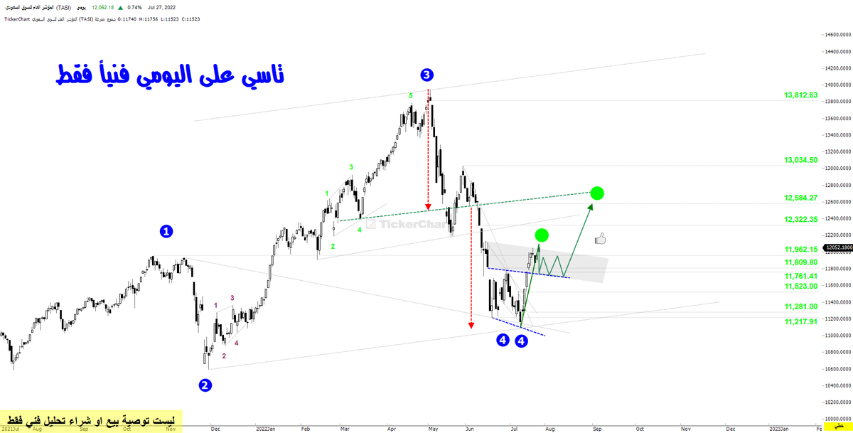 #تاسي عطاء حميل اقفل فيه الفجوة العلوية الاولى في الموجة الرابعة عند 11809 والقمة 11964
