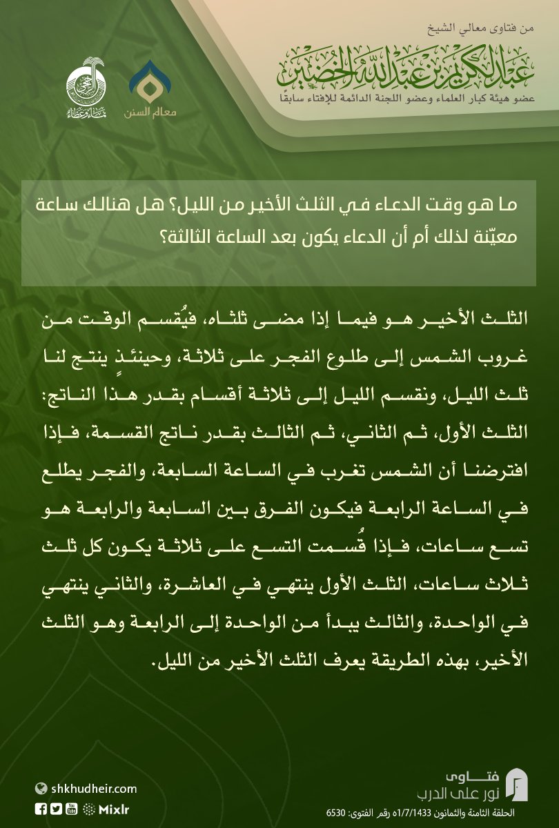 ما هو وقت الدعاء في الثلث الأخير من الليل؟ هل هنالك ساعة معيّنة لذلك أم أن الدعاء يكون بعد الساعة الثالثة؟