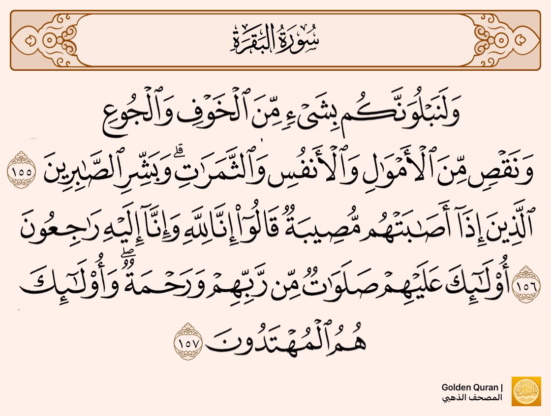 أشهر آيات البلاء الآيات الثلاث في سورة البقرة من ١٥٥ إلى ١٥٧