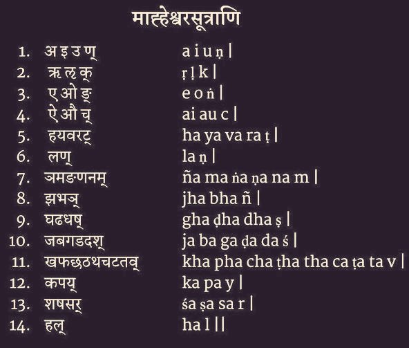 महर्षि पाणिनि ने इन सूत्रों को देवाधिदेव शिव के आशीर्वाद से प्राप्त किया जो कि पाणिनीय संस्कृत व्याकरण "अष्टाध्यायी का आधार बना।