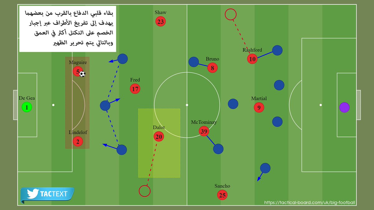 شكل #يونايتد كان يختلف بحسب شكل الخصم في الضغط، هذا الاختلاف كان الظهيرين مفتاحه الرئيسي.