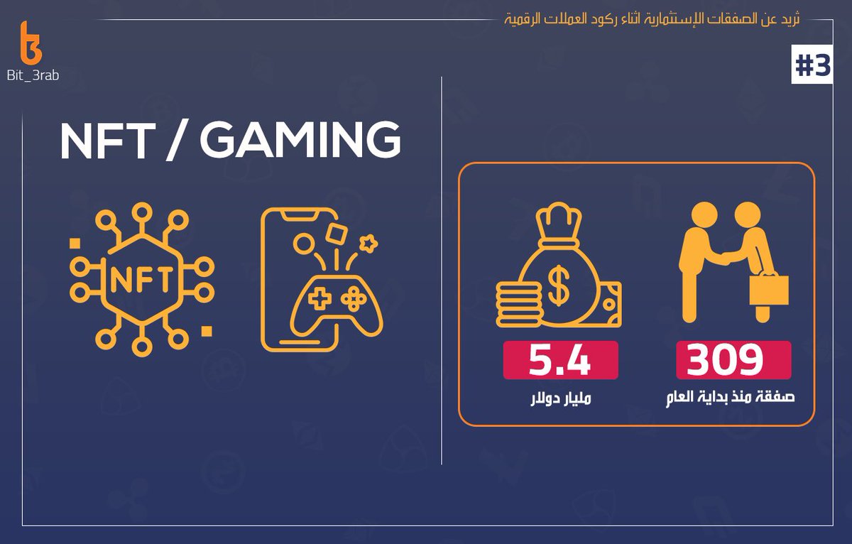 كان لمجال NFT/ Gaming نصيب كبير من الاستثمارت التي تم جمعها، حيث شكلت 20% من التمويل.