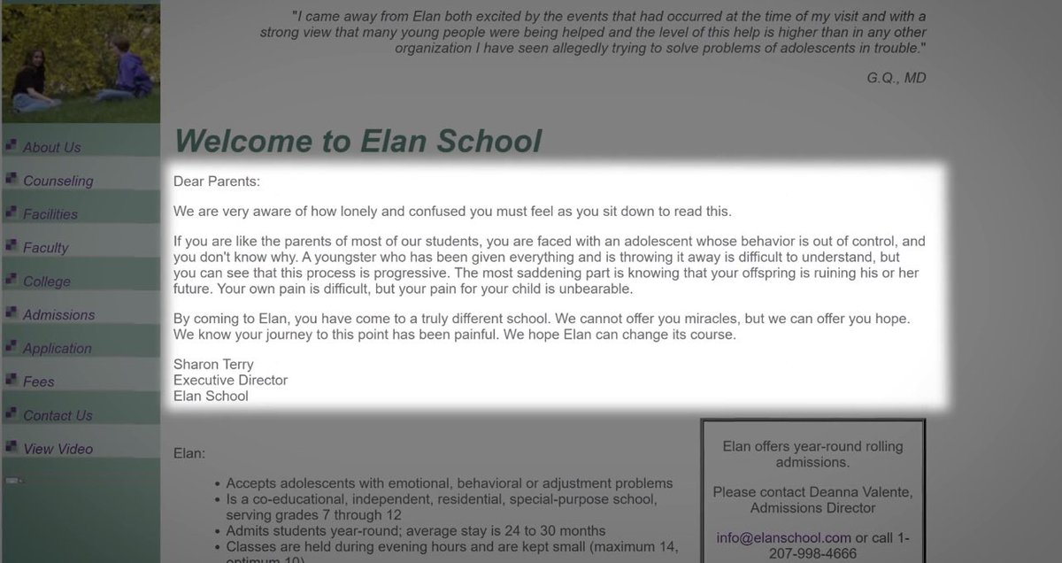 هنا بداء يطلع الكلام على الان و جاء فريق من مقاطعة إلينوي يبي يتأكد من اللي يصير الفريق كتب رسالة توصية لحاكم ميين و قالوله هالمدرسة قاعدة تحرم الأطفال من حريتهم و تحولهم لآلات بلا رأي كما إن غالب طاقم العمل هم نفس الطلاب و ليسوا أخصائيين نفسيين مدربين هذا يعتبر عمل قسري