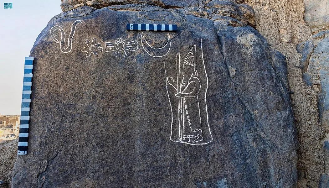 في عام 2010 اكتشفت هيئة الآثار السعودية لأول مرة على أول نقش هيروغليفي في تيماء شمال البلاد، متواجد عند صخرة ثابتة وعليه توقيع خرطوش لأحد ملوك مصر الفراعنة، وهو رمسيس الثالث الذي حكم مصر ما بين سنوات 1192 1160 قبل الميلاد.