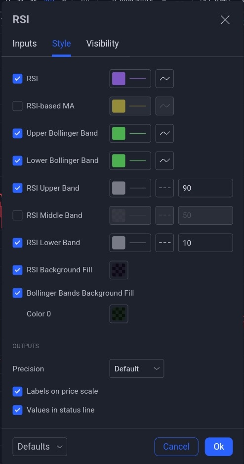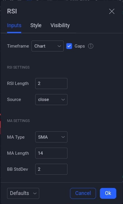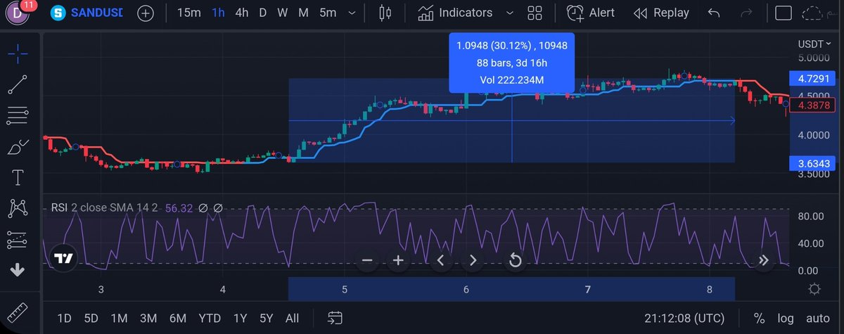 حالة البيع : عندما يكون مؤشر Half Trend باللون الأحمر ومؤشر RSI يساوي 90 أو أكثر