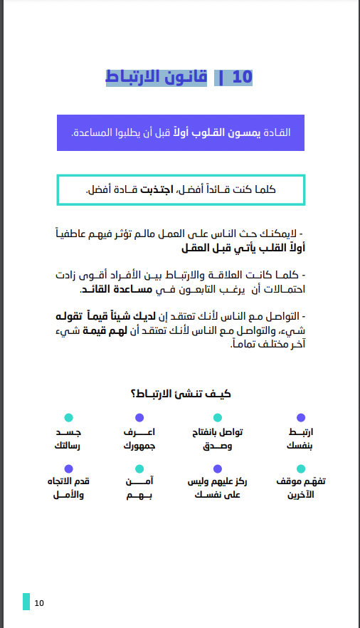 استنبط ماكسويل من خبرته 21 قانون في القيادة وهي كما يلي :