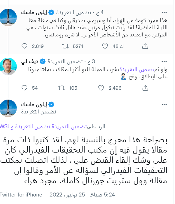 برضو إيلون ماسك ما تجاوب مع طلبات الصحيفة تقديم تعليق رسمي لها، واكتفى بشتم الصحيفة في منشنات على تويتر