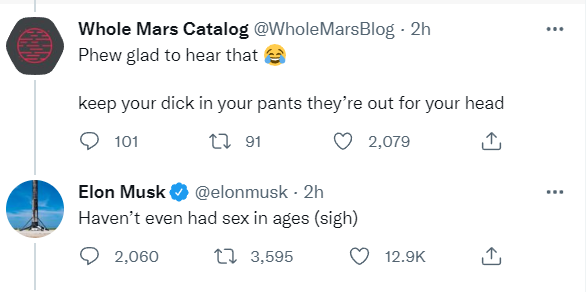 أحد المواقع المعارضة لإيلون ماسك، قالوا له "خبّئ قـ*يبك في بنطالك" كإشارة لأن يتوقف عن تشبيك زوجات المشاهير، مثل أمبير هيرد زوجة الممثل المشهور جوني ديب وغيرها!