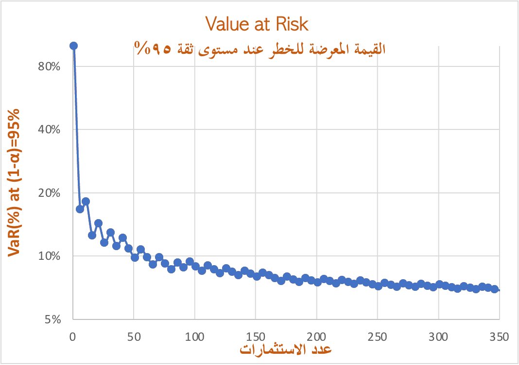 ١.١٢ ×(٩٢٪)-١=٣٪ تقريبا. ويعني أن هناك احتمال بنسبة ٩٥٪ ان يكون عائد المحفظة ٣٪ فأكثر.