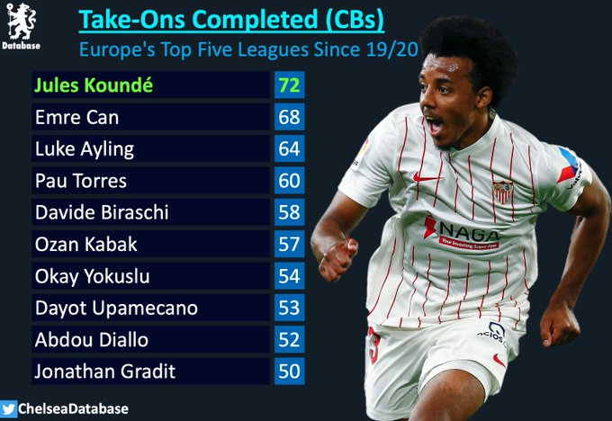 كوندي بيدخل تقريبا في5 التحامات أرضية خلال اللقاء، بيفوز بالالتحام بنسبة تتجاوز الـ73%..معدل رهيب، ومن أفضل المعدلات بأوروبا، وحتى الالتحامات الي بيخسرها، بيقدر بسهولة يفضل داخل الـgame ويحاول تاني