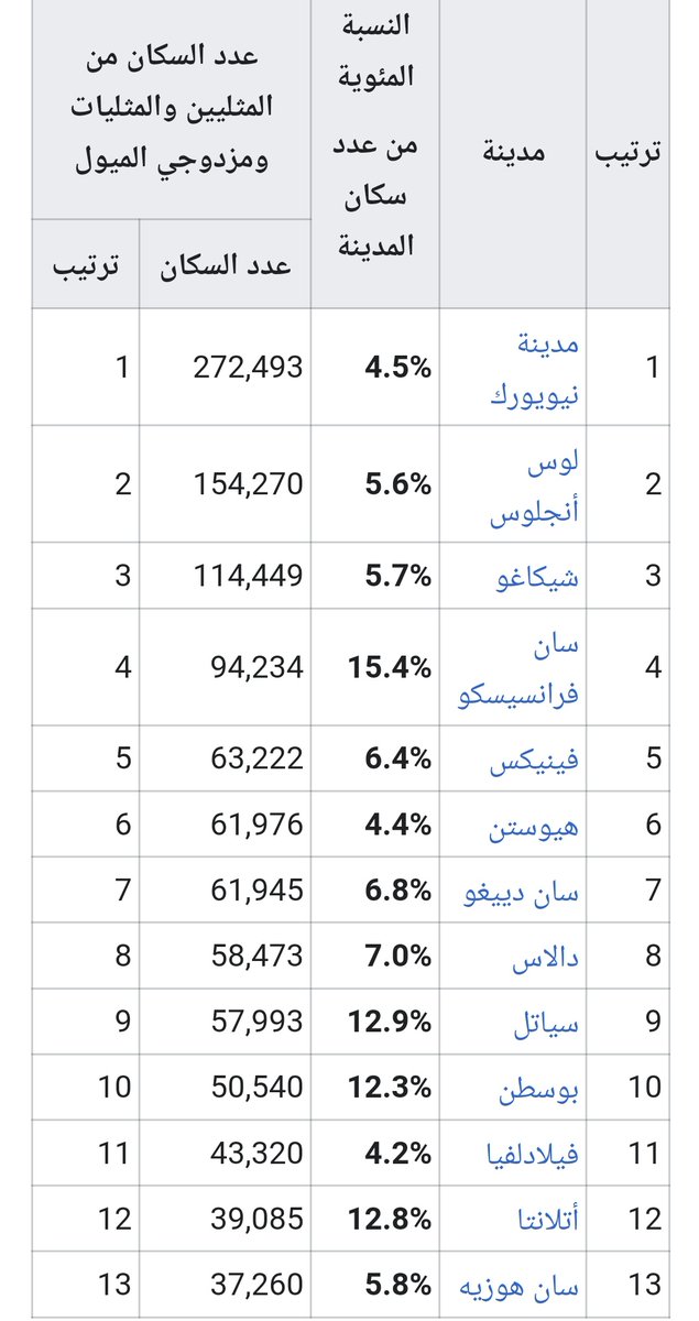 لنأخذ مثلا لإحصائية قديمة تعود لعام ٢٠٠٩ ، حيث نجد أن عدد المثليين في مدينة كسان فرانسيسكو بلغ قرابة ١٥.٤٪ من إجمالي السكان في المدينة ...