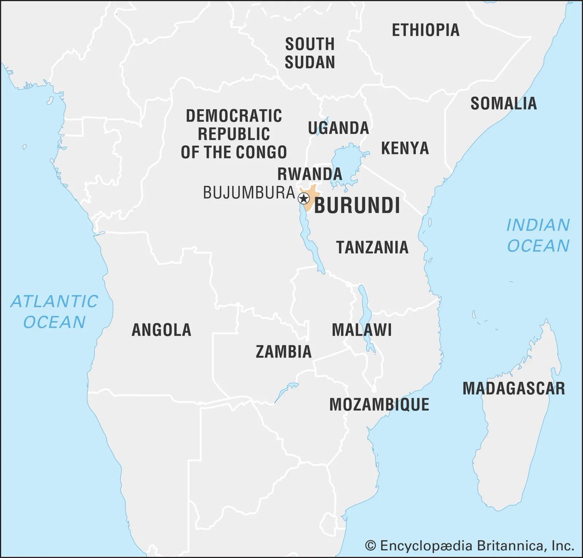 بوروندي دولة صغيرة جدا في افريقيا، كان يعيش الفرد فيها على ما يعادل 275$ سنويا في الثمانينات، و لا توجد فيها أي موانئ لأنها محاصرة بالأراضي و مطلة على نهر غير متصل بالمحيط