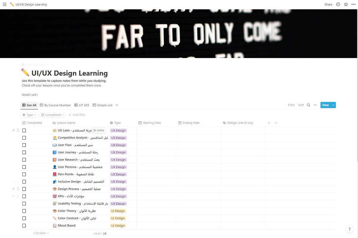 في الفترة الماضية كنت اشتغل على كتيب مجاني مجمعة في مصادر للمواضيع الأساسية لتعلم تصميم الواجهات وتجربة المستخدم مع خطة للتعلم. بما أن المجال يعتبر جديد وفي كثير ناس ابدوا الرغبة في تعلمه، بديت اجمع المواضيع اللي من وجهة نظري مهمة ان يتعلمها الشخص المهتم بالمجال.
