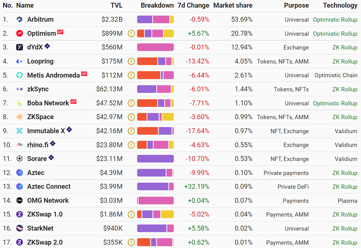 Uniswap V3 y est pour beaucoup, et concentre à lui seul presque la moitié de la TVL. Au final, c'est plutôt logique, les utilisateurs ayant tendance à y effectuer leurs transactions plutôt que sur #Ethereum directement, et ce afin d'éviter les frais.