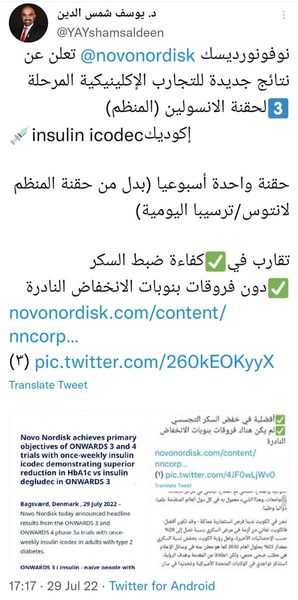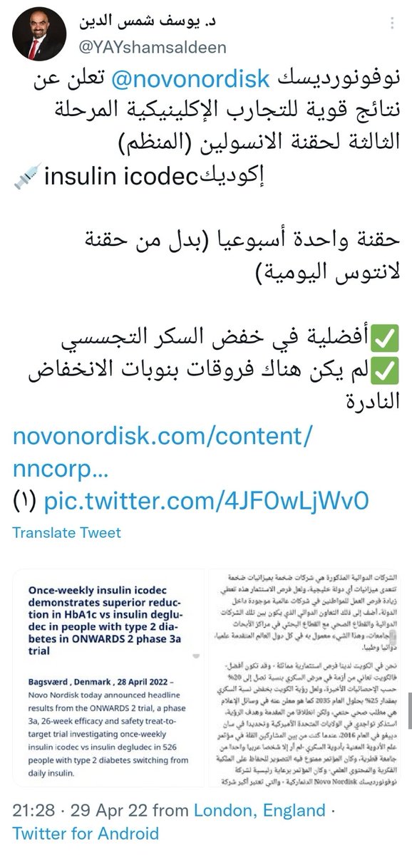 نوفونورديسك @novonordisk تعلن عن نتائج جديدة للتجارب الإكلينيكية المرحلة3️⃣لحقنة الانسولين (المنظم)