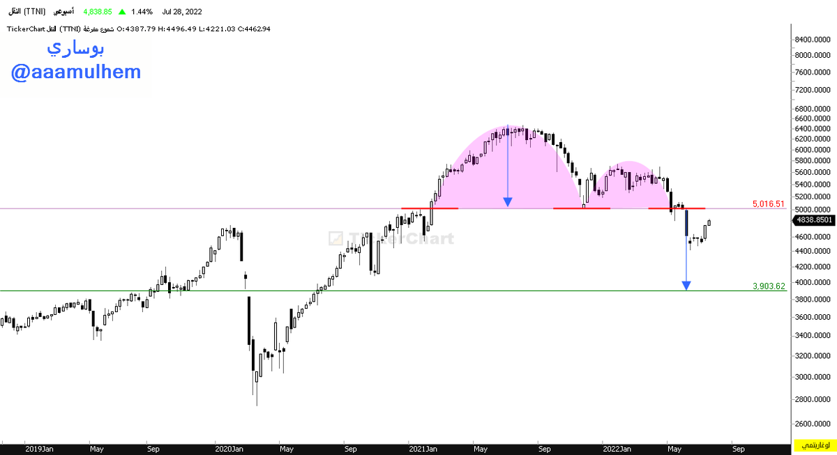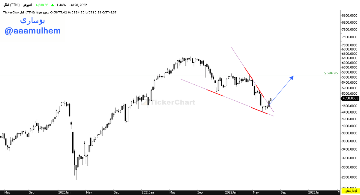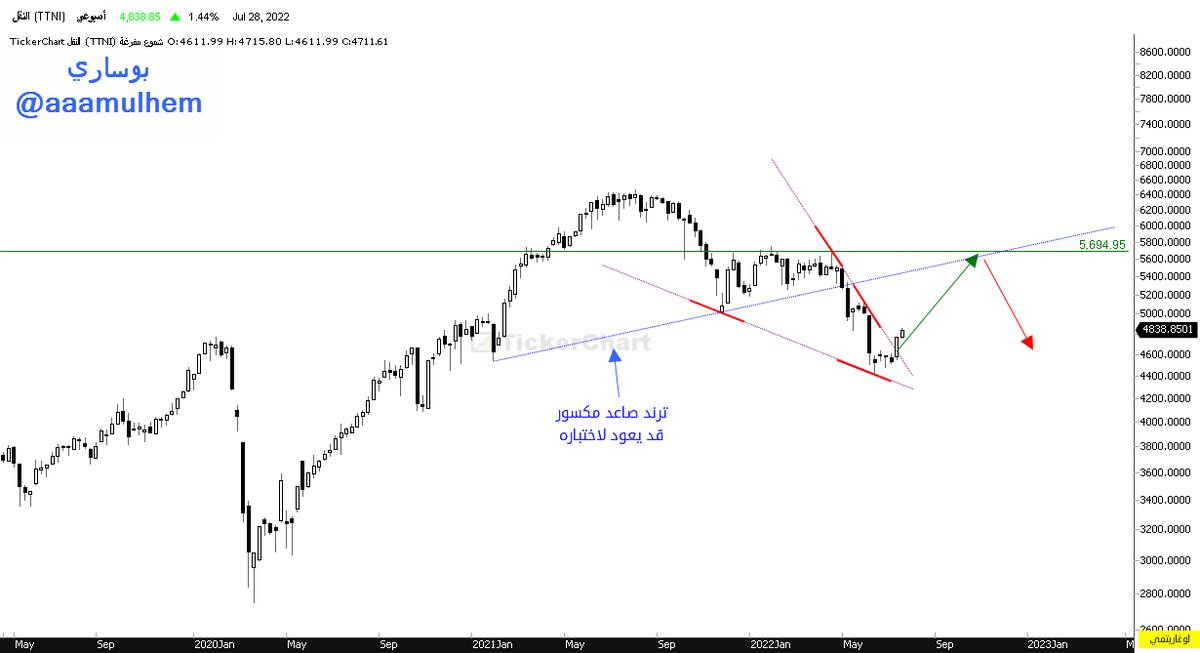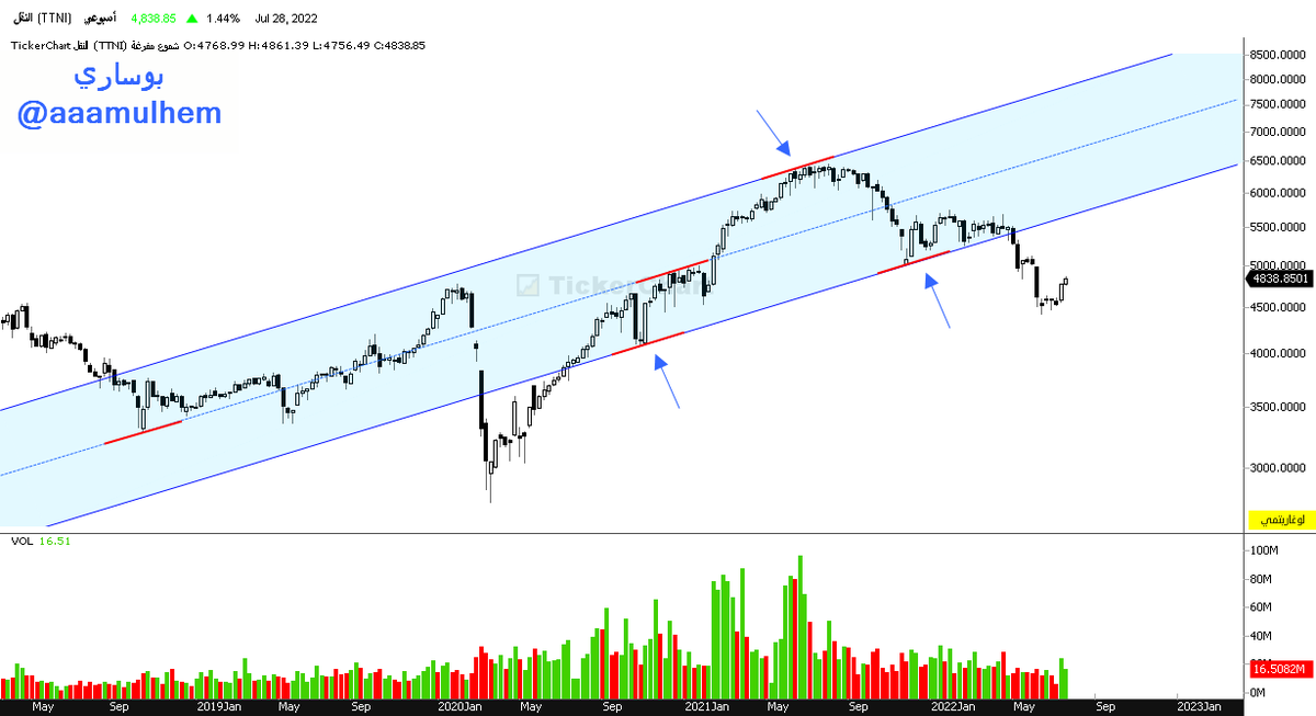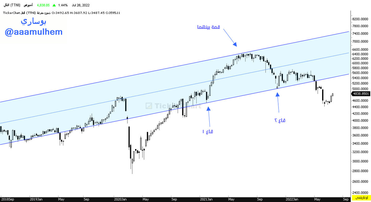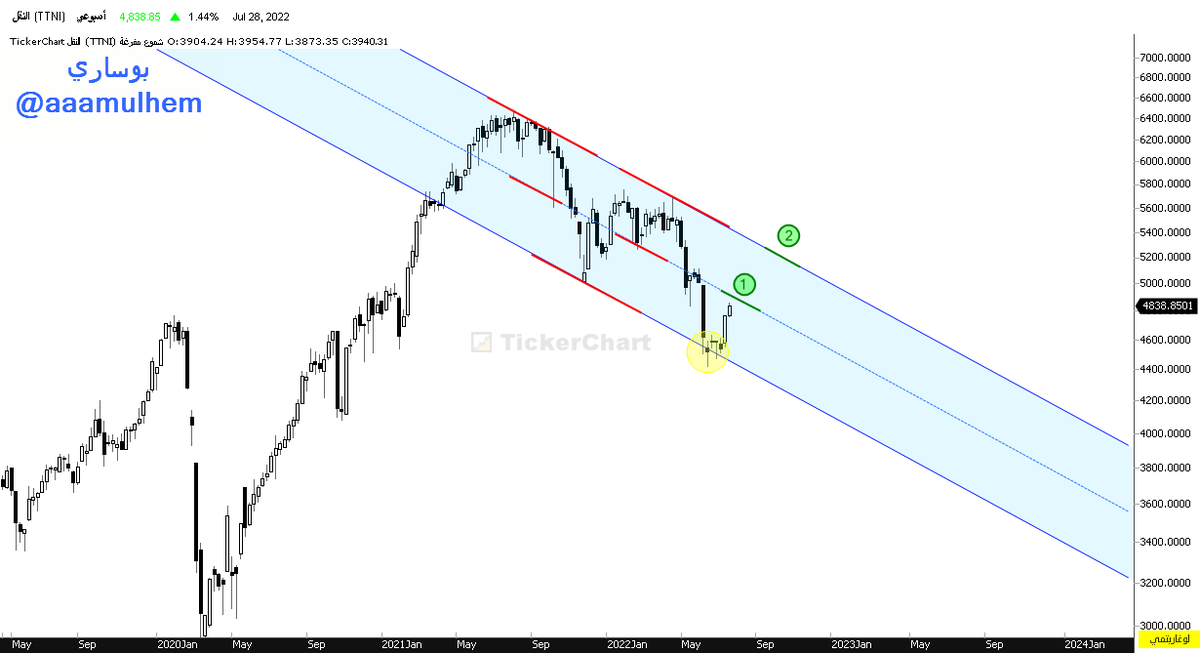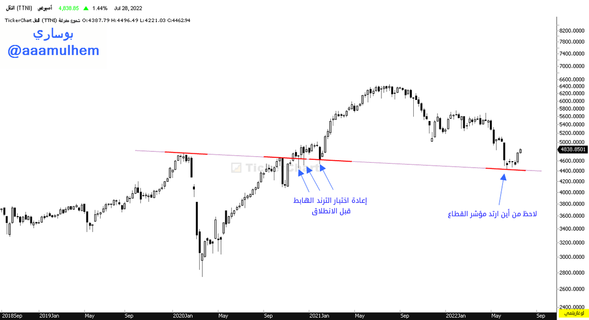 لو رسمنا ترند صاعد بين القيعان بدءاً من قاع كورونا سنلاحظ بأن مؤشر قطاع #النقل كسر مساره الصاعد الحاد.