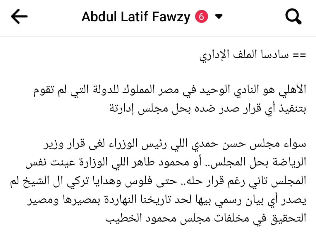 - كل ما يحدث على الساحة الرياضية من الأهلي خلال الفترة الماضية منذ خسارته أفريقيا ومن ثم كأس مصر والوقت الحالي ما هي إلا محاولات للضغط على المسؤولين ومحاولة الاستقواء بالجماهير لتحقيق أهداف خارج الملعب بعد فشلهم في الفوز داخل الملعب