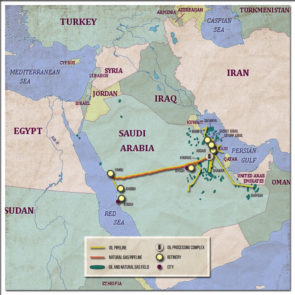 4️⃣ببدايةعام1981(اي بعد أشهر من بدءالحرب العراقية~الايرانية)،تم اكمال الخط السعودي(Petroline)للنقل النفط من الساحل الشرقي للمملكة(البقيّق)الى الساحل الغربي(ينبع)(تم توقيع عقوده عام1977)