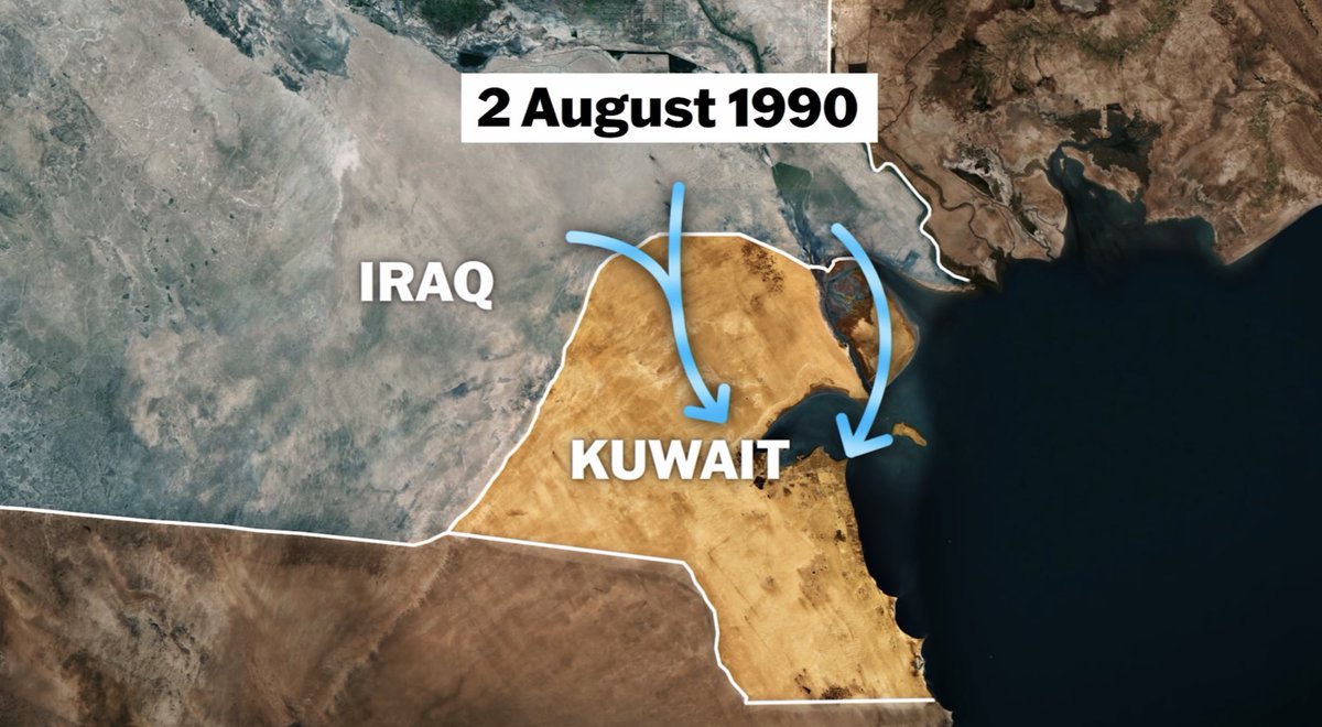 في في الثاني من أغسطس عام 1990 بدأ #العراق في الغزو الكويت مع القوات البرية القادمة من الحدود وكذلك المروحيات والقوارب من المياه تمكنت القوات العراقية من التقدم إلى مدينة الكويت في غضون ساعات فقط.