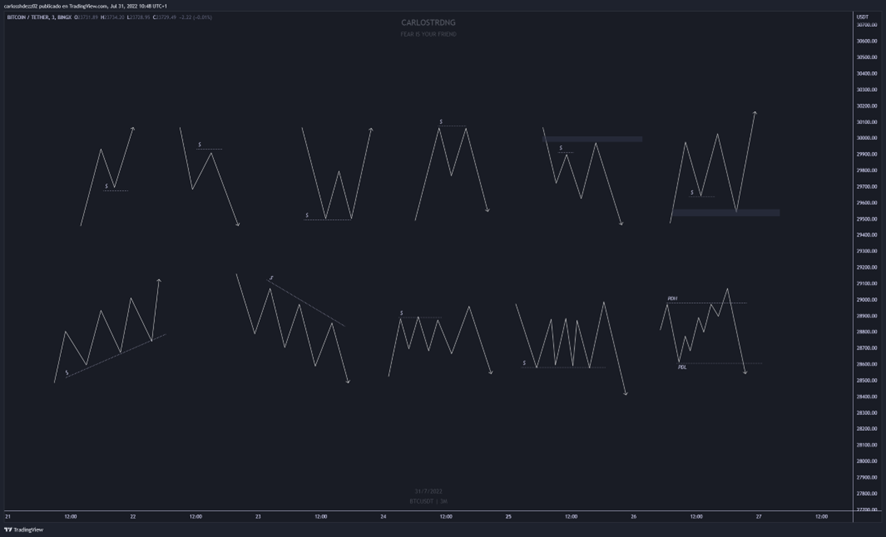 Resumiéndolo mucho y para que se entienda, las instituciones y peces gordos crear suelos, techos, líneas de tendencia… Para engañar al trader retail. Básicamente crean trampas en el mercado.