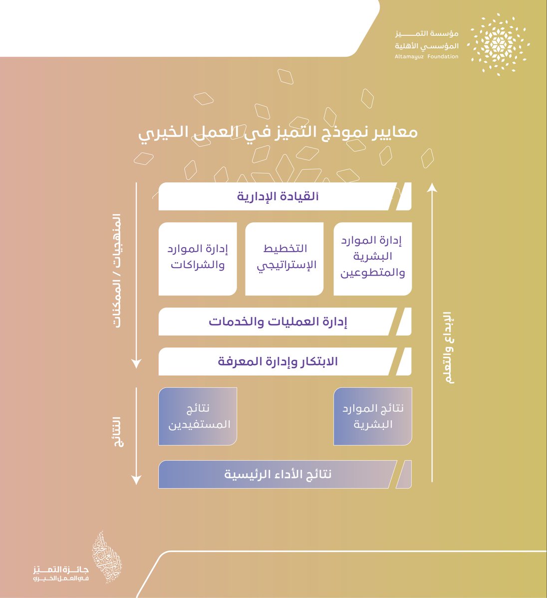 أصدرت #مؤسسة_التميز_الأهلية نُسخة منقحة من (نموذج التميز في العمل الخيري)، والتي طُوِّرت لتواكب تقدم القطاع غير الربحي السعودي، وتُسهم في تمكين المنظمات غير الربحية من التعامل مع التحديات التي تواجهها لتحقيق التحوّل المؤسسي، وصولًا للغايات الطموحة.