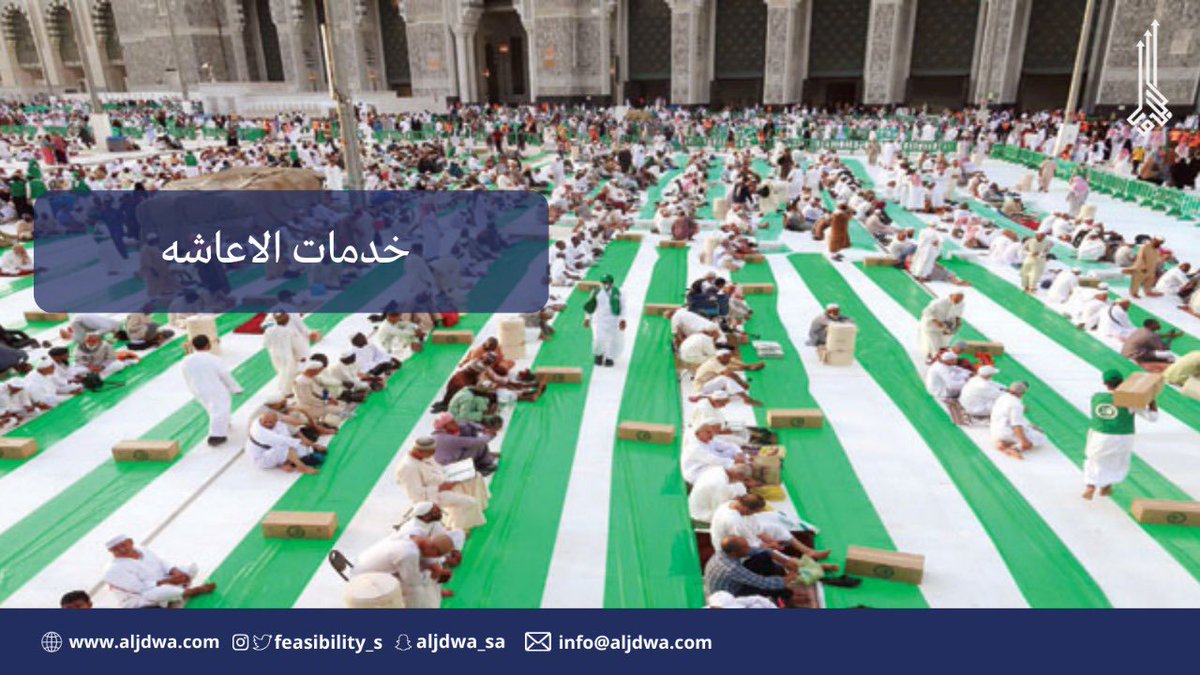 كما تقدم خدمات الاعاشة في العمرة لشهر رمضان المبارك حيث تعمل هذه الخدمة على توفير كمية كبيرة من الوجبات وتقديمها للمعتمرين لإفطار الصائم.