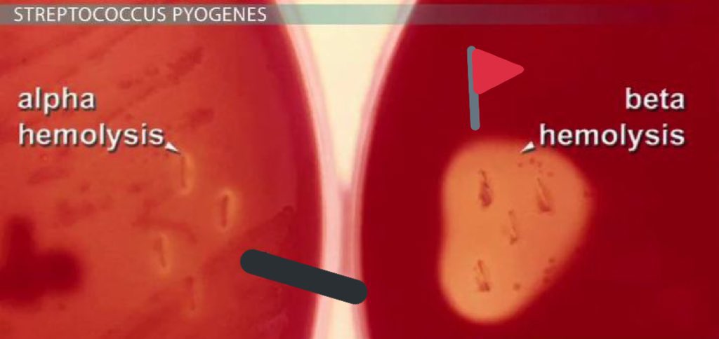 ♦️ و بنفس الوقت يعتبر البلود أجار بيئة تفريقية (Differential Media) تساعد على التفريق بين أنواع تحلل/تكسر الدم (Haemolysis) التي تسببه بعض أنواع الباكتيريا :