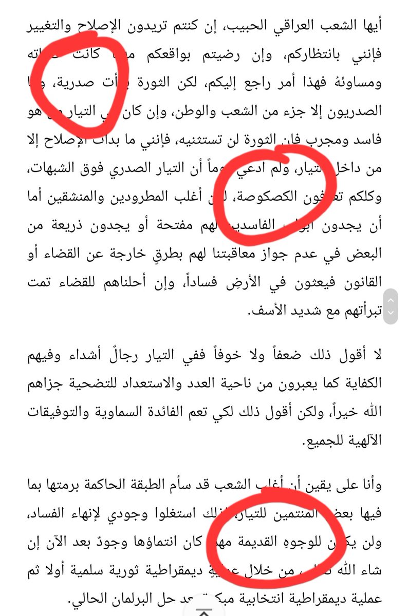يا سيد مقتدى العراقيون يريدون اسقاط العملية السياسية برمتها مع احزابها ودستورها