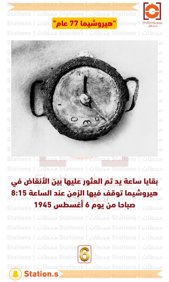 بقايا ساعة يد تم العثور عليها بين الأنقاض في #هيروشيما توقف فيها الزمن عند الساعة 8:15 صباحا من يوم 6 أغسطس 1945