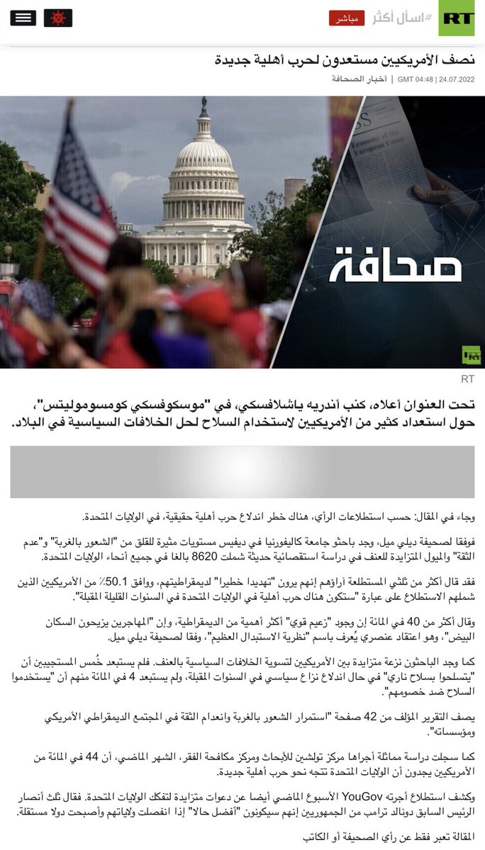 هنا تغريدة تبين النظرة الإيجابية لما حدث قبل ساعات قصيرة لتفتيش منزل ترامب للحزب الجمهوريين وعلى رأسهم ترامب