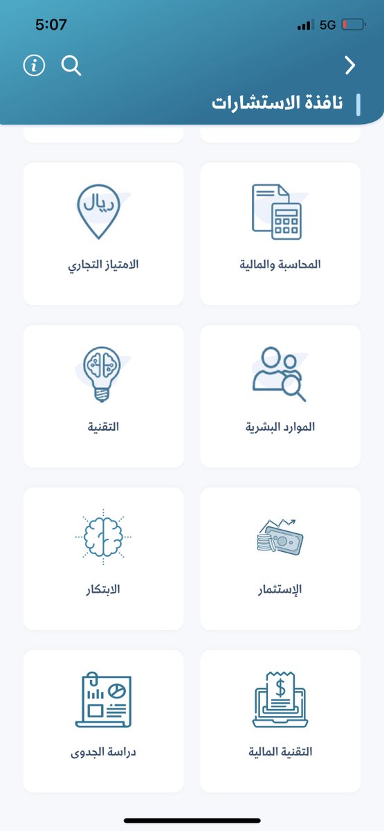 المجالات كثيرة وتقدر تختار المجال الي فعلاً أنت تحس انه سبب ضعف مشروعك أو عندك نقص خبرة فيه وودك تستفيد من المختصين، فقط حمل هذا التطبيق وأبدآ استشارتك.