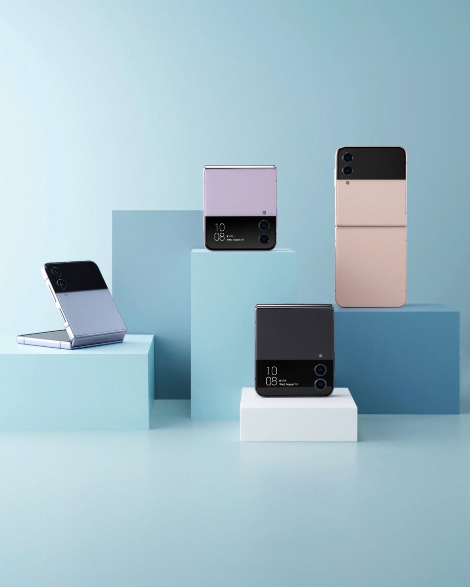 الجالاكسي Z Flip 4 راح يجي بأربعة ألوان وهي الاسود، الموف، الازرق واخيراً الزهري، برضو في نسخة اسمها BeSpoke وراح تكون قابلة للتخصيص من ناحية الالوان وراح تكون في موقعهم