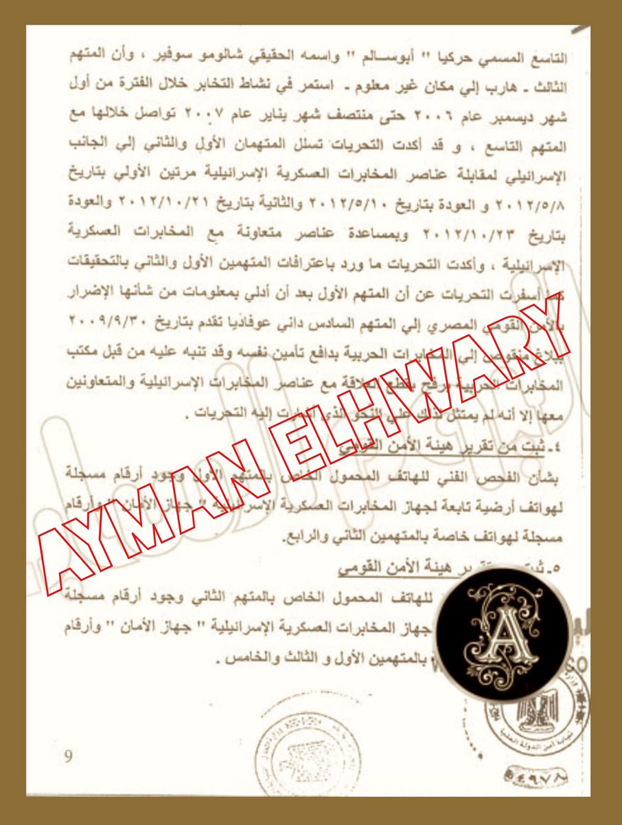 ٢- ⁃ س : ما هى الفترة الزمنية لتواصلك مع ضابط المخابرات الإسرائيلى أبورائد؟